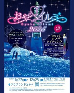 2025年11月22日(土)、 17時から、「おやべイルミ」が始まりました。12月25日まで💡 12月20日(土)19時30分〜、「クロスランド クリスマス花火」🎆 12月20日(土)〜25日(木)、「クリスマスタワーラ […]