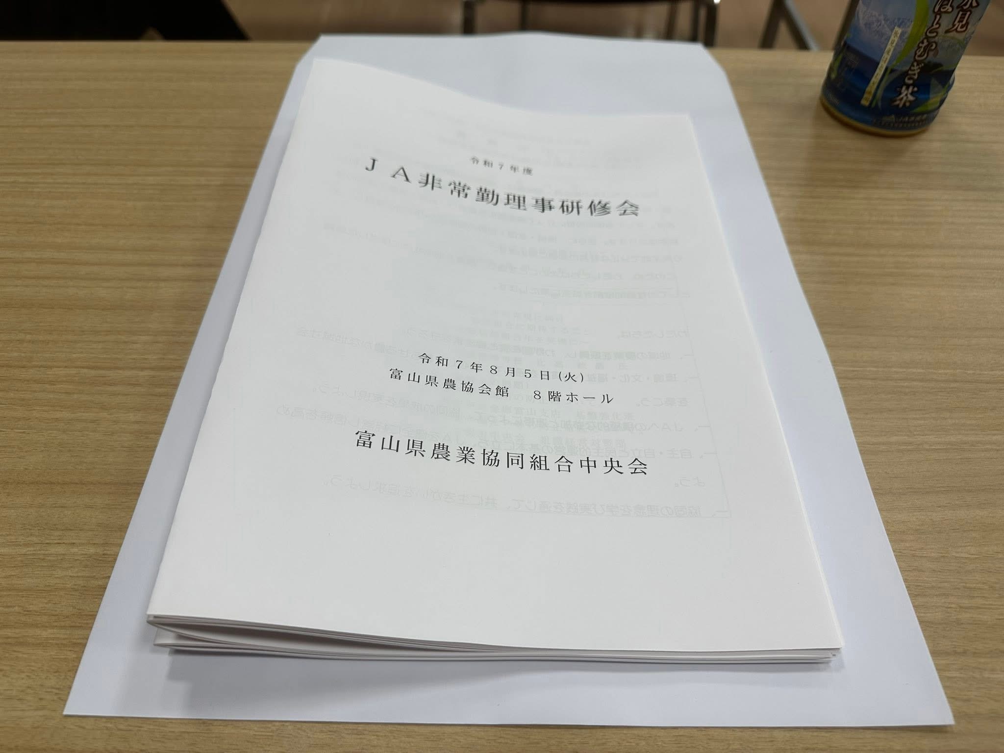 JA非常勤理事研修会 2025年8月5日 最終更新日時 : 2025年10月23日 admin 2025年8月5日(火)、 今日は、13時30分〜、富山県JA会館にて、JA非常勤理事研修会が開催されています。 私は、お昼にロータリー例会があり、少し遅れて出席。