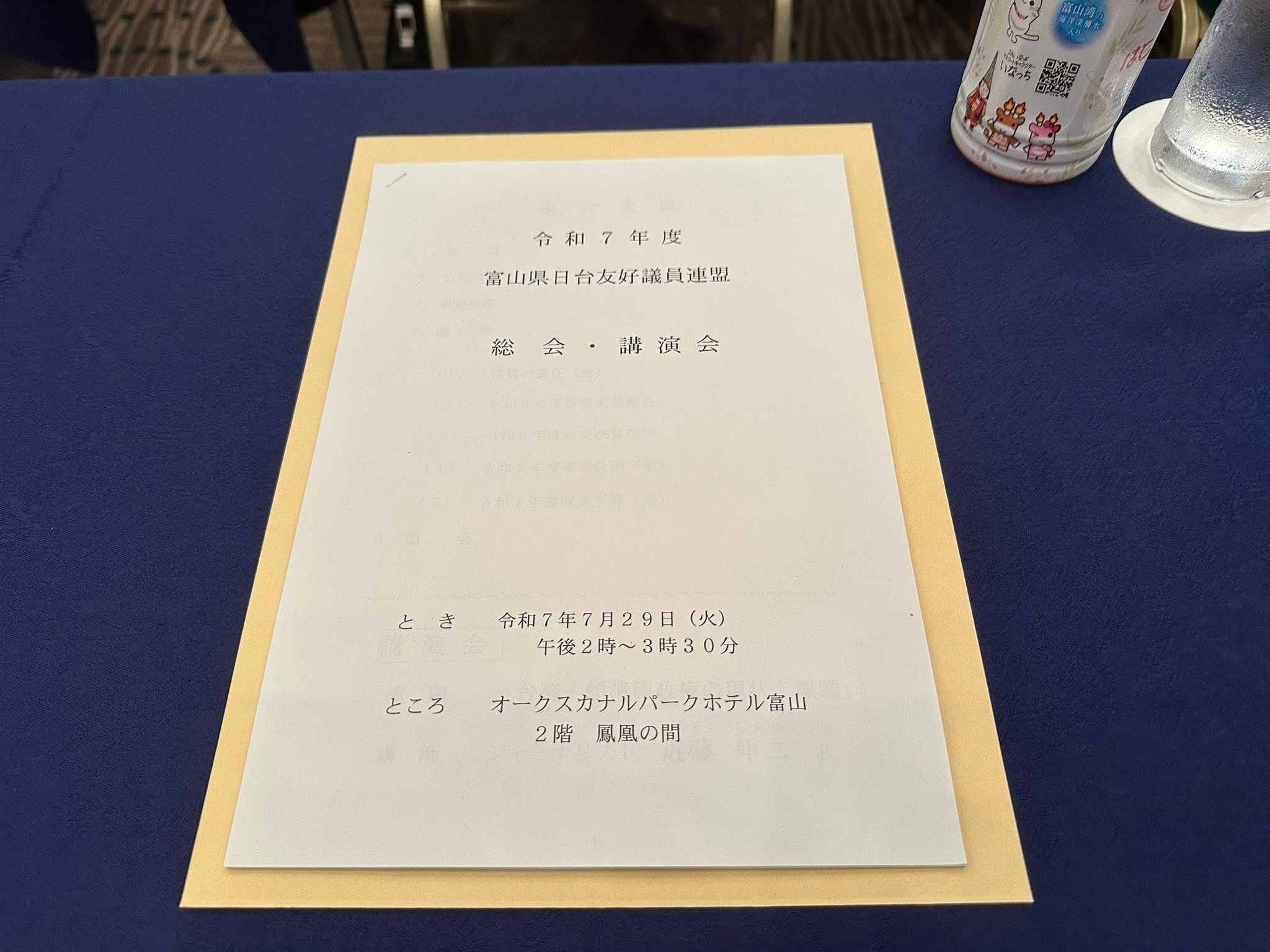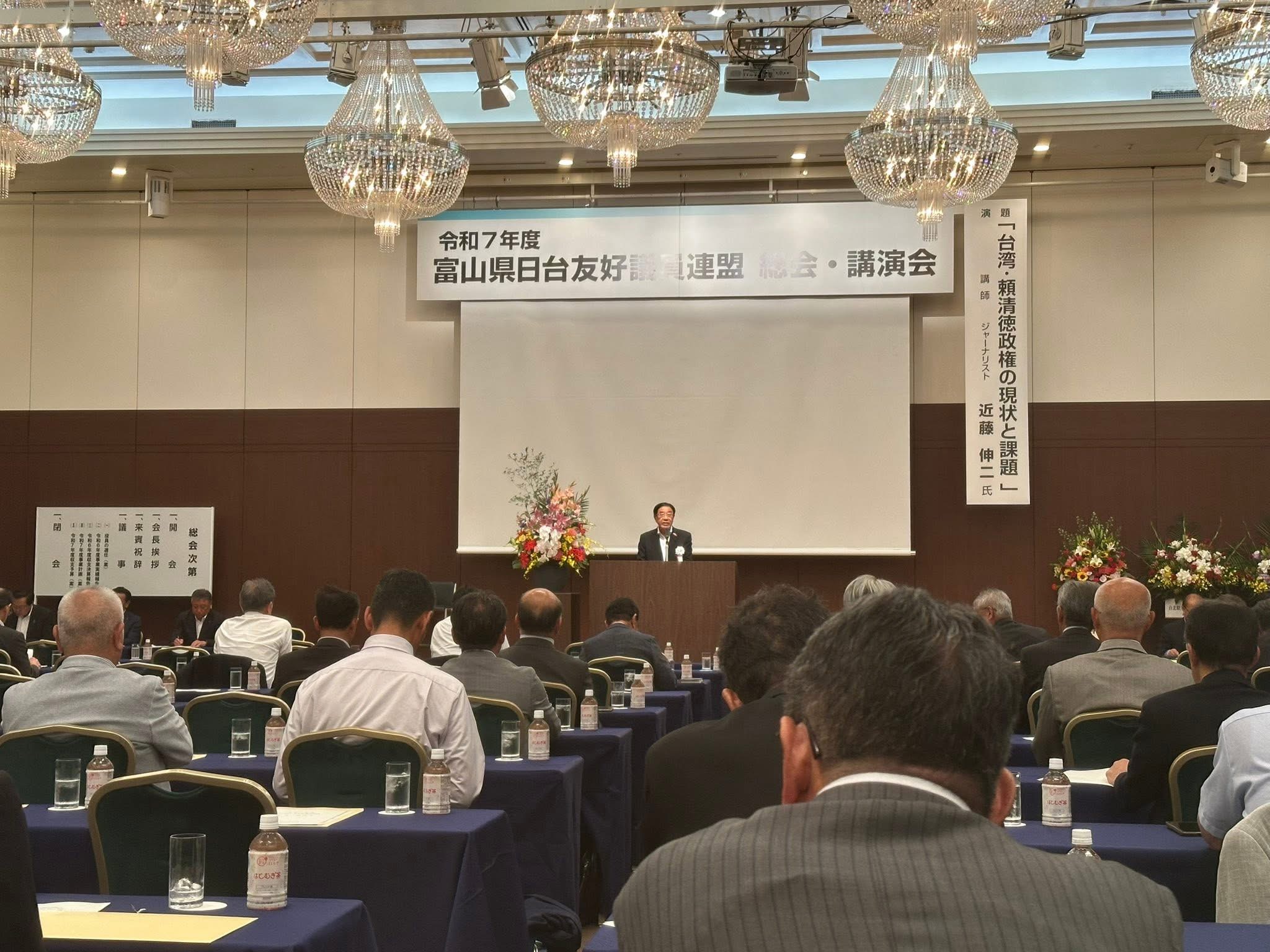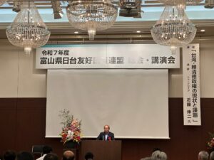 富山県日台友好議員連盟 総会・講演会 2025年7月29日 最終更新日時 : 2025年10月23日 admin 2025年7月29日(火)、 本日14時〜、オークスカナルパークホテル富山にて開催の「富山県日台友好議員連盟 総会・講演会」に出席。 講演会の演題は、「台湾・頼清徳政権の現状と課題」 講師は、ジャーナリスト 近藤伸二 氏 台湾も政権運営は難しいようです。