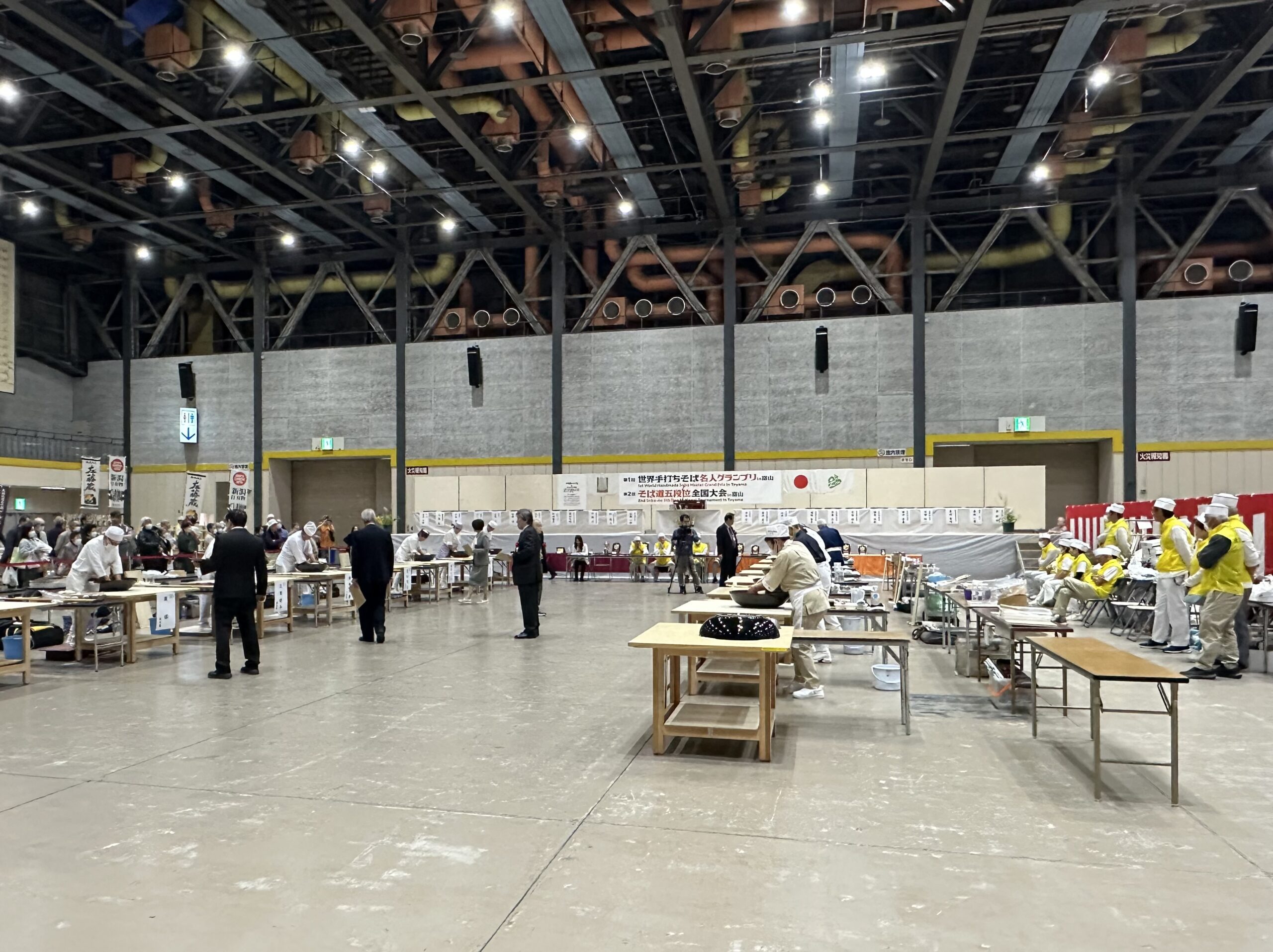 とやまグルメ・フードフェス2025 2025年10月25日 最終更新日時 : 2025年10月25日 admin 2025年10月25日(土)、 今日は9時〜、東蟹谷公民館にて、明日の公民館まつりの準備👍 午前中で終わり、それから富山産業展示館テクノホールへ🍽️ 今日と明日、10時〜16時、「とやまグルメ・フードフェス2025」やっています。 小矢部市飼料用米推進協議会のブースにお立ち寄りください🌾🥚 隣の東館では、第1回世界手打ちそば名人グランプリin富山が開催されていました。
