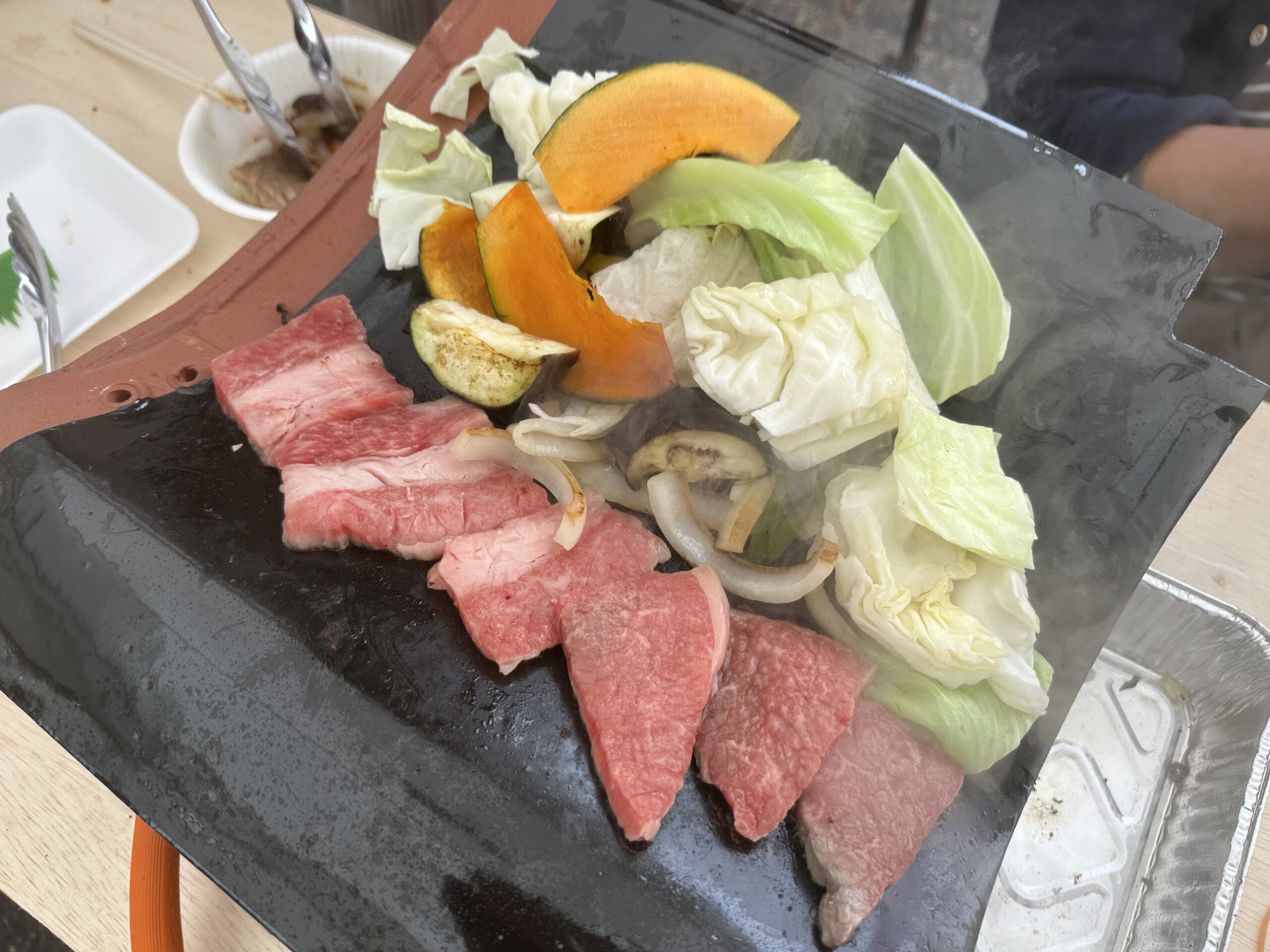 小矢部市農業祭・牧野祭11/9 2025年11月9日 最終更新日時 : 2025年11月9日 admin 2025年11月9日(日)、 今日も、小矢部市農業祭・牧野祭🐃 雨模様にもかかわらず、昨日同様、朝からクロスランドの駐車場は一杯🚙 まずは長い行列でしたが、昨日買えなかった白菜を購入🥬 続いて、マルカッサン×石動高校の「さといもプリン」🍮等々をいただき、お買い物スタンプラリーで「小矢部産たまご」をゲット🥚 お昼は、孫たちと家族で稲葉メルヘン牛BBQ🥩