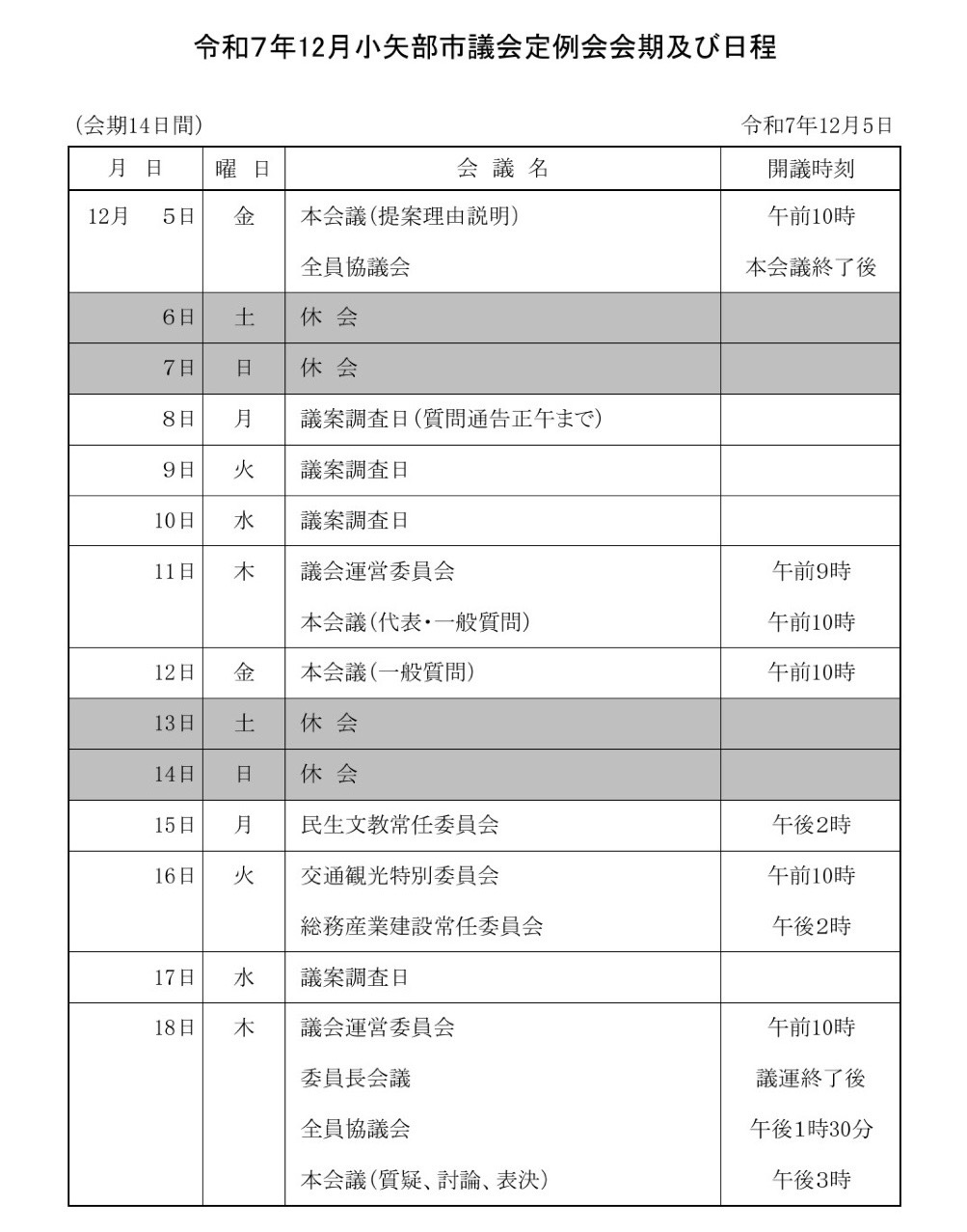 小矢部市議会12月定例会開会 2025年12月5日 最終更新日時 : 2025年12月5日 admin 2025年12月5日(金)、 今日から、小矢部市議会12月定例会が始まりました。 私の一般質問は、11日(木)の午後、2番目の予定です。 Screenshot