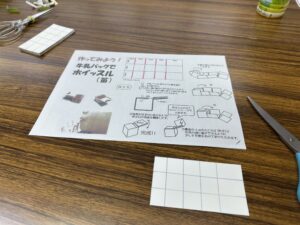 ・牛乳パックホイッスル、新聞紙スリッパ作成