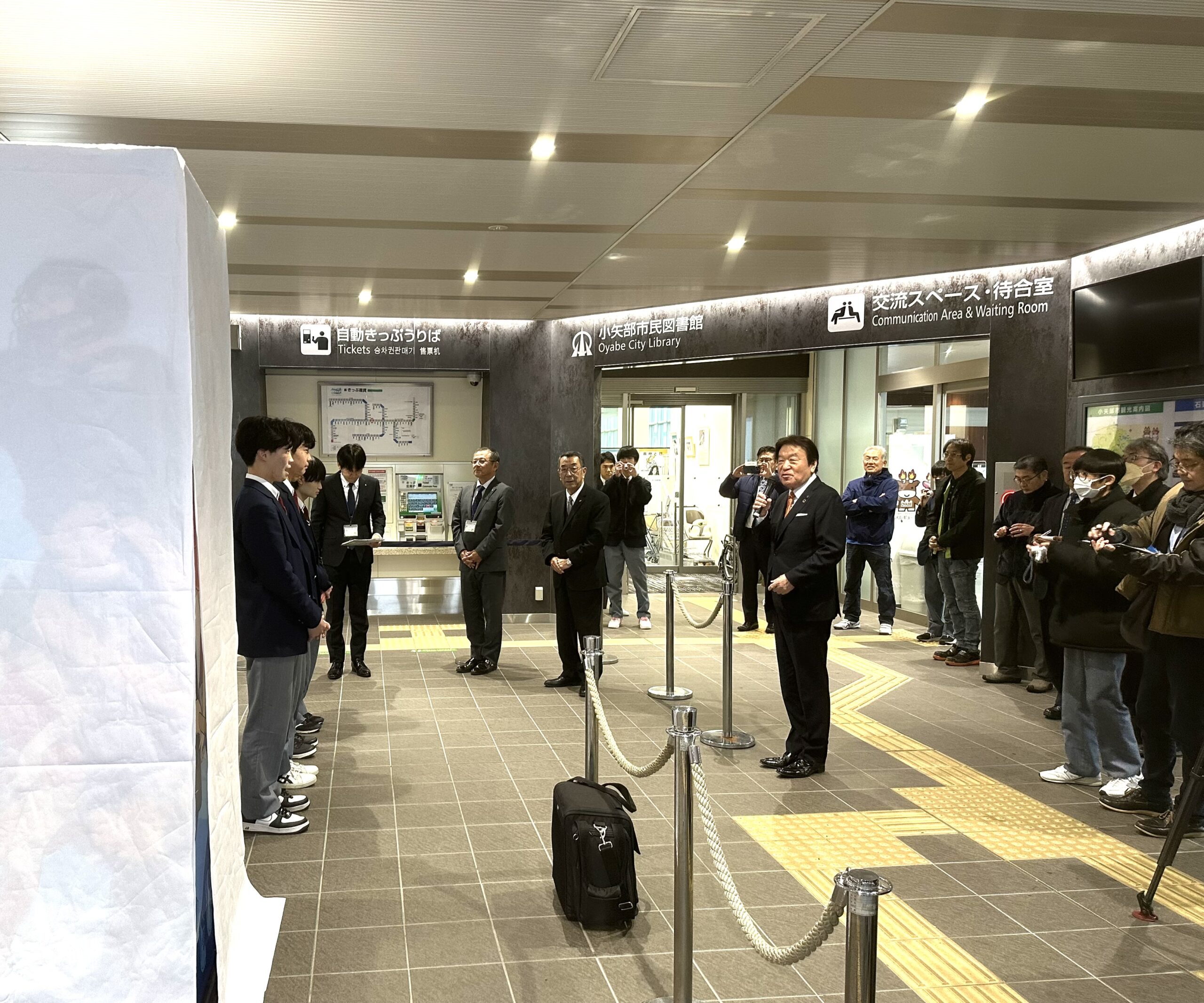 ホッケータウンPRモニュメント除幕式 2025年12月17日 最終更新日時 : 2025年12月17日 admin 2025年12月17日(水)、 本日15時〜、石動駅2階 改札口前コンコースにて、ホッケータウンPRモニュメント除幕式が執り行われました👏 石動高校生の政策提案によって、公式ホッケータウンとしての小矢部市を市内外へPRすることを目的として、美術部に所属する生徒の皆さんの協力のもと作成されたものです。