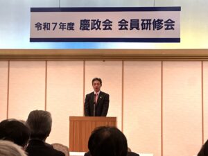 慶政会 会員研修会 2025年12月20日 最終更新日時 : 2025年12月20日 admin 2025年12月20日(土)、お疲れ様です。 本日は、慶政会の会員研修会。 17時〜、(旧)第一イン新湊にて開催。 担当は、射水市議会。お世話ありがとうございます。 来賓挨拶は、開催地の夏野射水市長。 第1部は、橘代議士による国政報告。 補正予算の概要についてお聞きしました。 第2部は、会員懇親会。 ここで野上先生よりご挨拶をいただきました。 ところで、立山連峰が素敵過ぎて、新湊へ向かう途中でパチリ📷