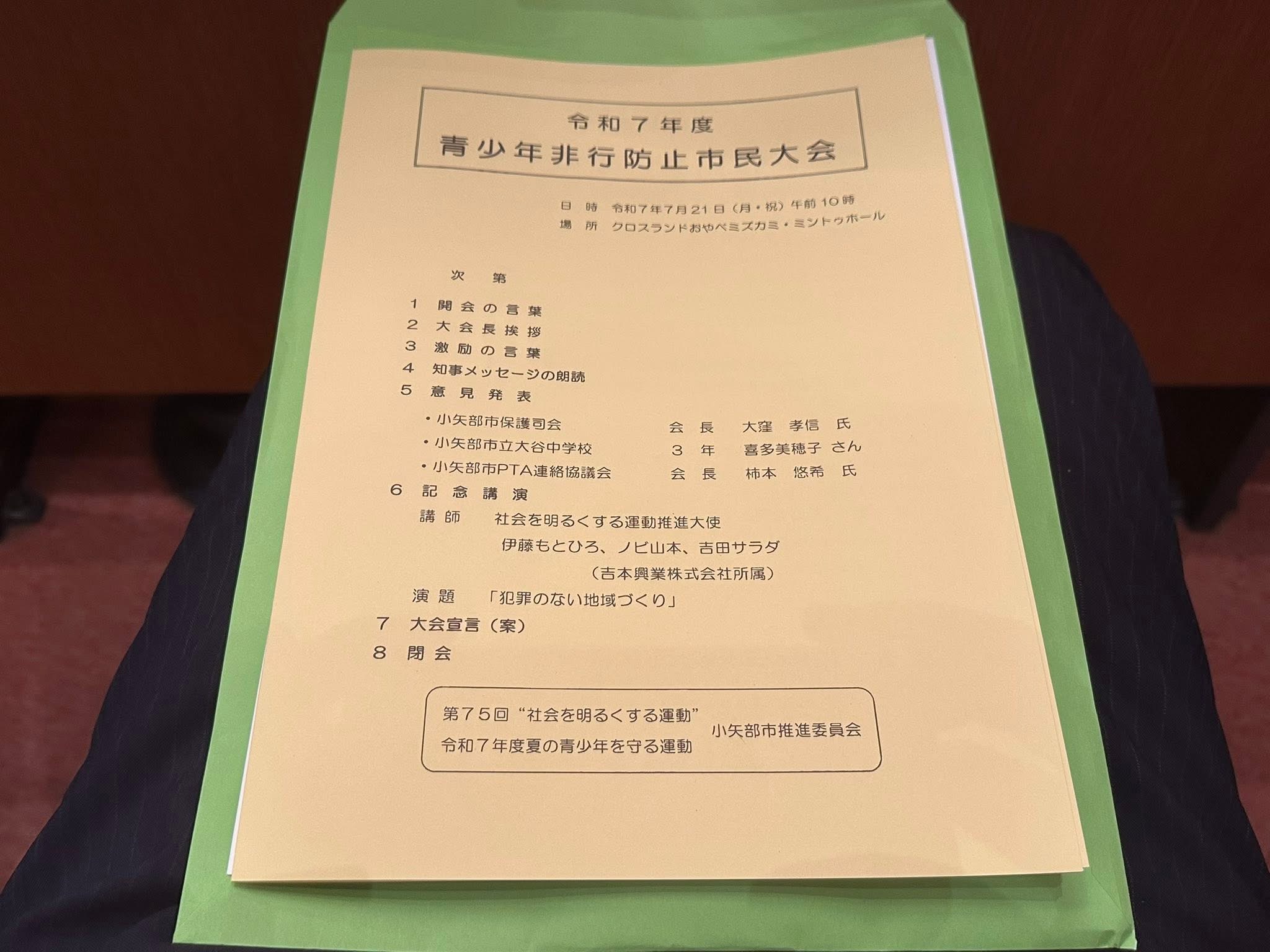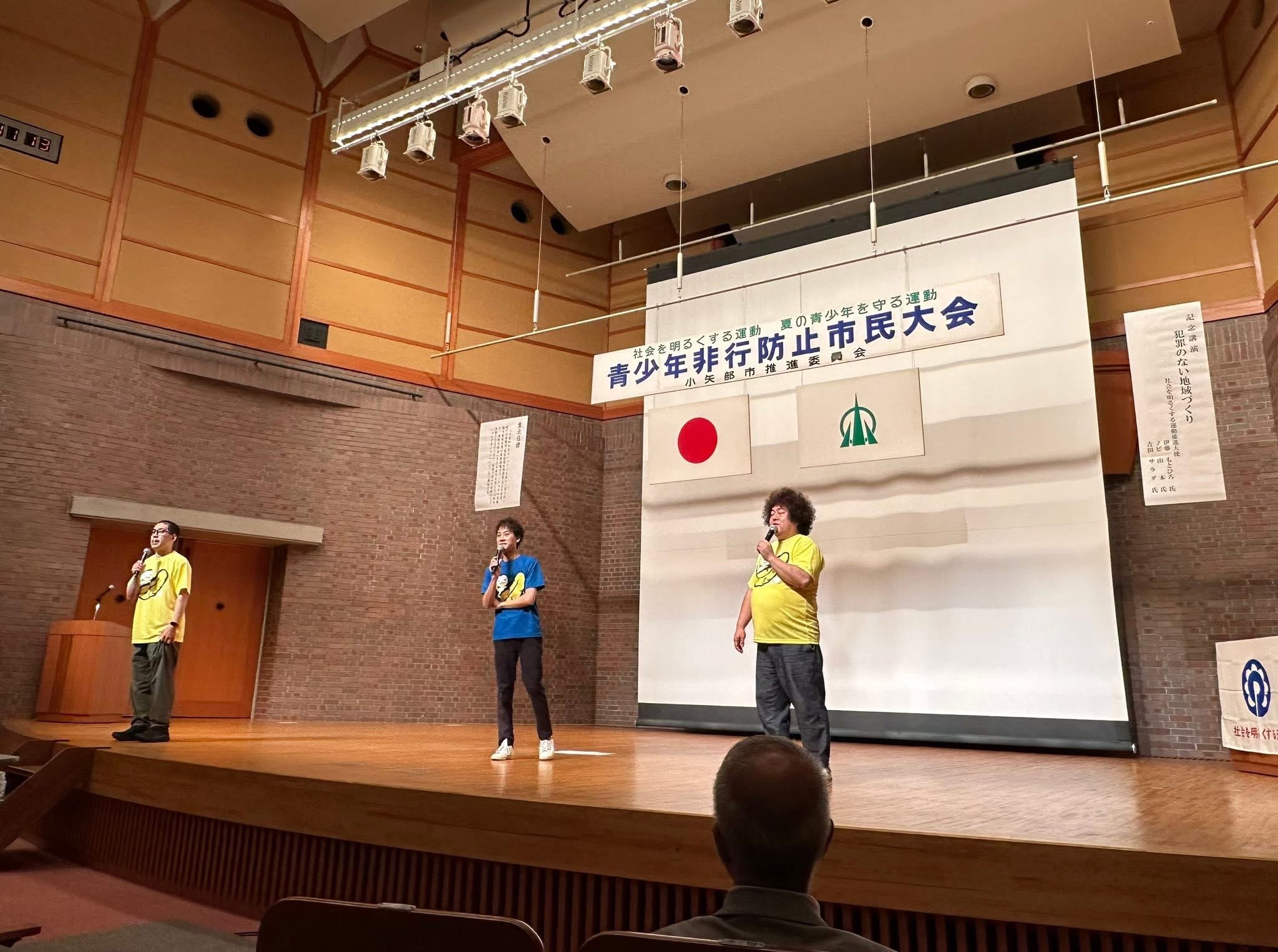 青少年非行防止市民大会 2025年7月21日 最終更新日時 : 2026年1月14日 admin 2025年7月21日(月・祝)、 10時〜、クロスランドおやべにて、青少年非行防止市民大会が開催されました。 式典・意見発表・記念講演、最後はお笑いで閉会。