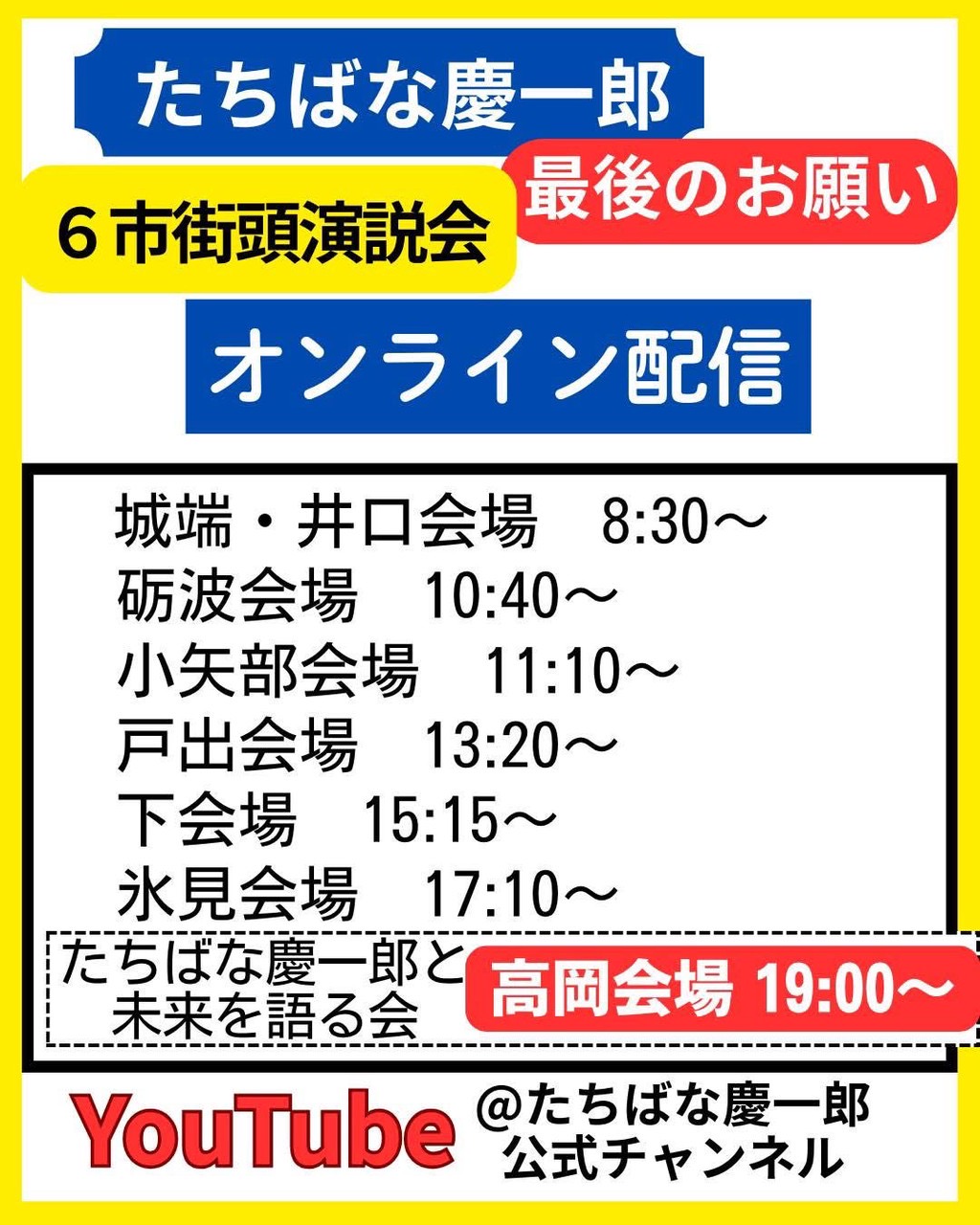 たちばな慶一郎候補 ミニ集会 2026年2月7日 最終更新日時 : 2026年2月7日 admin 2026年2月6日(金)、 今日の午前中、市内5か所で、たちばな慶一郎候補のミニ集会を開催🎤 私が担当した会場は、小矢部精機さん⚙️ お忙しい中、近隣の東蟹谷地区の皆さんも含めて、大勢の方々にお集まりいただき、ありがとうございました😊 明日は11時10分〜、JAいなば農業創造センターにて、たちばな候補の最後の演説🎙️ オンラインでライブ配信されます🖥️
