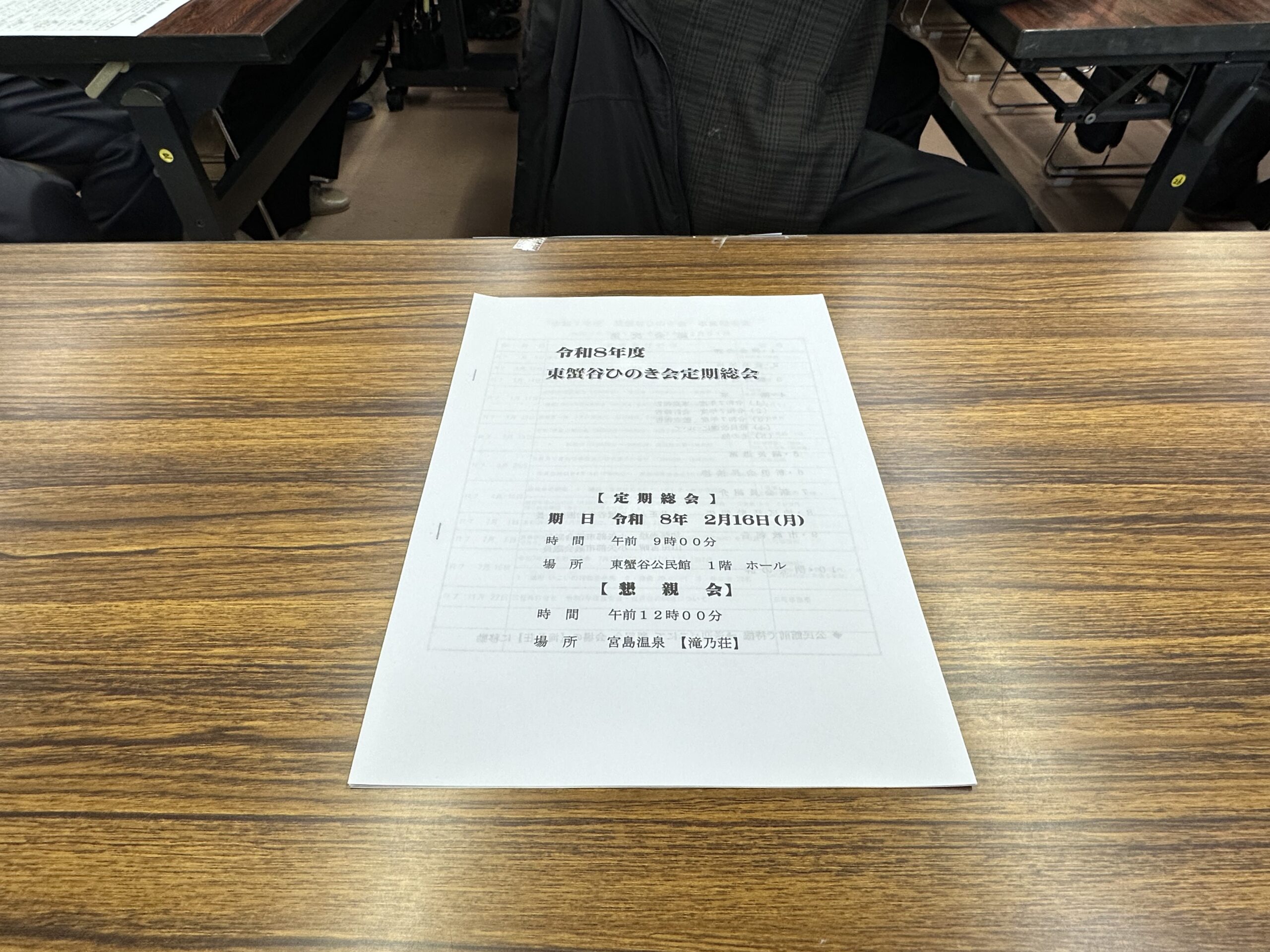 東蟹谷ひのき会 定期総会 2026年2月16日 最終更新日時 : 2026年2月16日 admin 2026年2月16日(月)、 今日は、9時〜、東蟹谷公民館にて、「東蟹谷ひのき会」という会の定期総会が開催され、「市政報告」をさせていただきました。 その後の懇親会は、滝乃荘にて🍶 先輩方から多くのお話を伺いました。