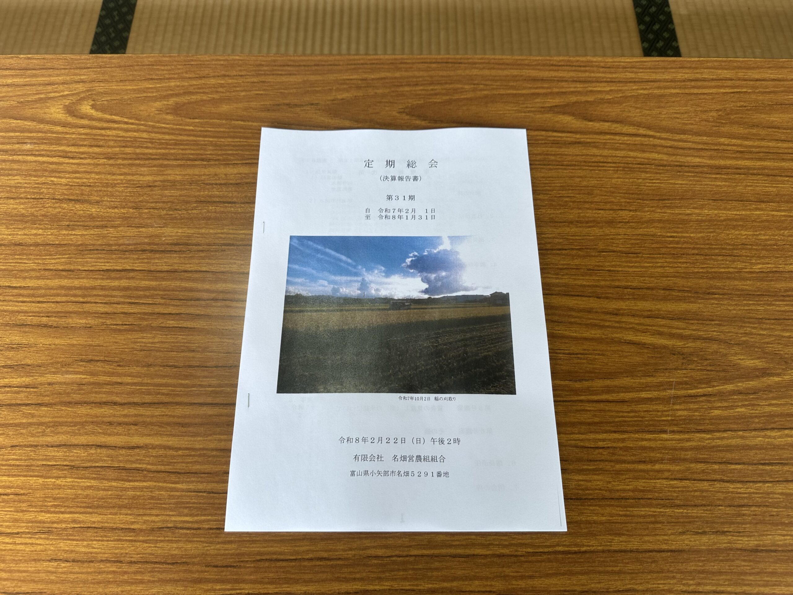 名畑営農組合 定期総会 2026年2月22日 最終更新日時 : 2026年2月22日 admin 2026年2月22日(日)、 今日、(有)名畑営農組合の定期総会を開催🌾 14時〜、名畑会館にて。 総会終了後は、懇親会🍻 今年も頑張りましょう🚜