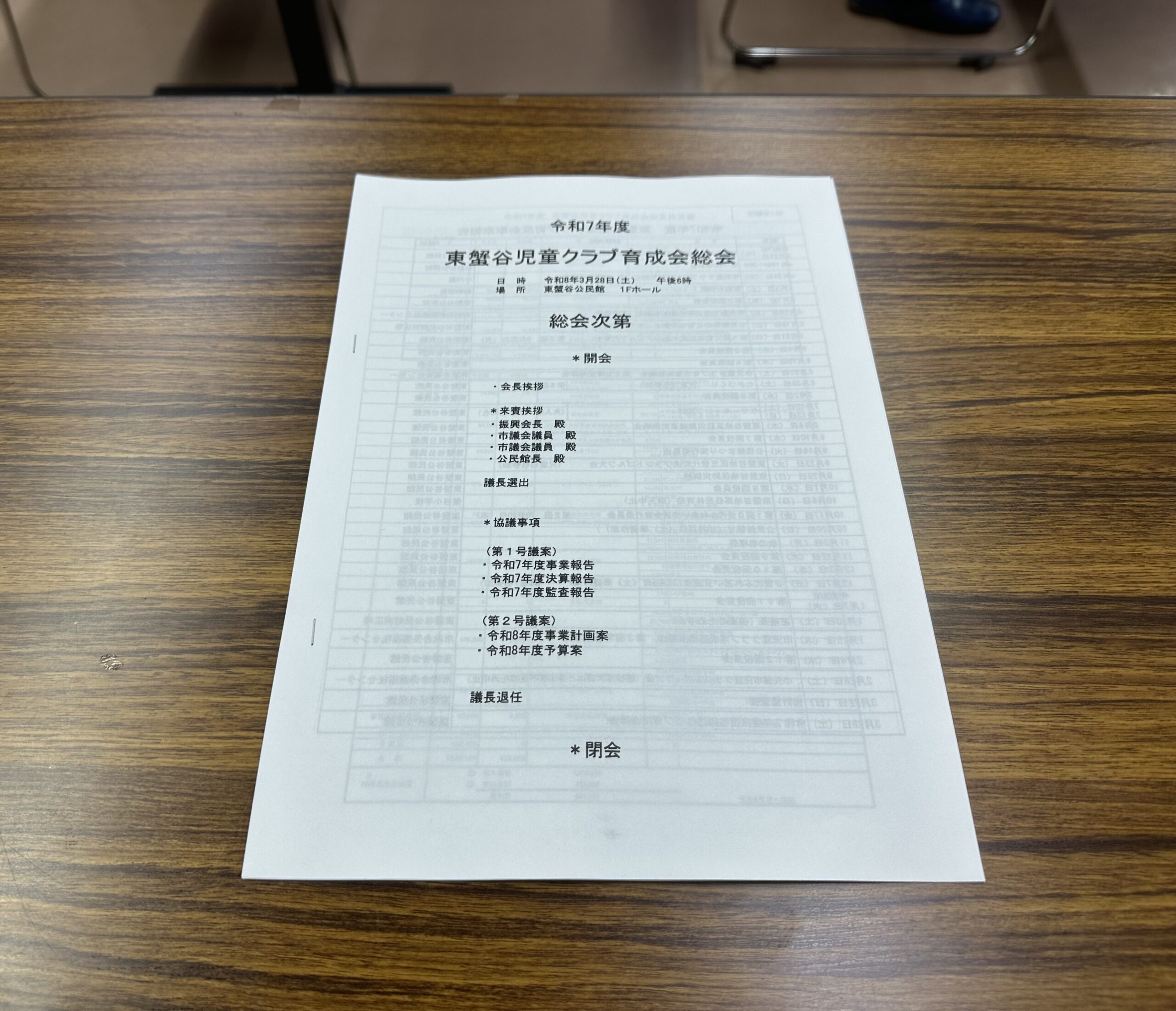 本日18時〜、東蟹谷公民館にて、東蟹谷児童クラブ育成会の総会が開催されました。